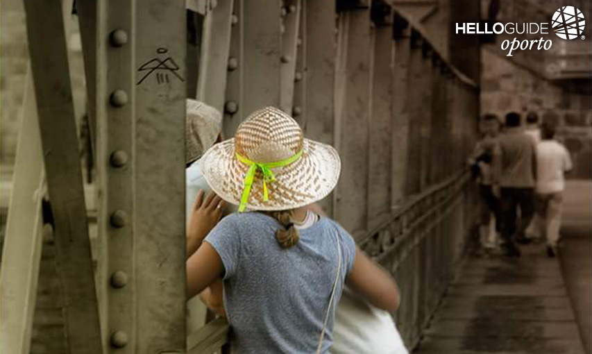 Touristen staunen 2015-10-28 Beschreibung: Touristen durch die Landschaft von Porto und Gaia auf D. Luís I Brücke erstaunt. Autor: Ja Pinto